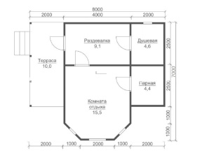 | Основание (обвязка) | Из обрезного бруса (100х150 мм. 150х150 мм. 150х200 мм. согласно выбранному сечению бруса). Обработка антисептиком. | |